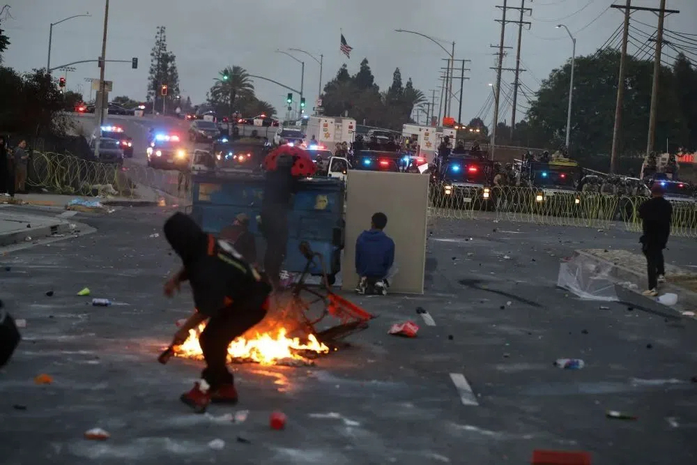 当地时间8日早上,首批美国国民警卫队进驻洛杉矶。尽管洛杉矶警察局同日发表声明称抗议活动已“平安结束”,然而8日中午,抗议者与国民警卫队依然发生了激烈冲突。同日下午,警方向抗议者射击非致命子弹。